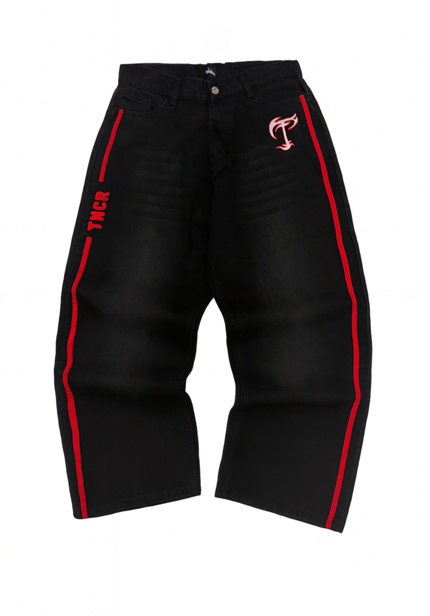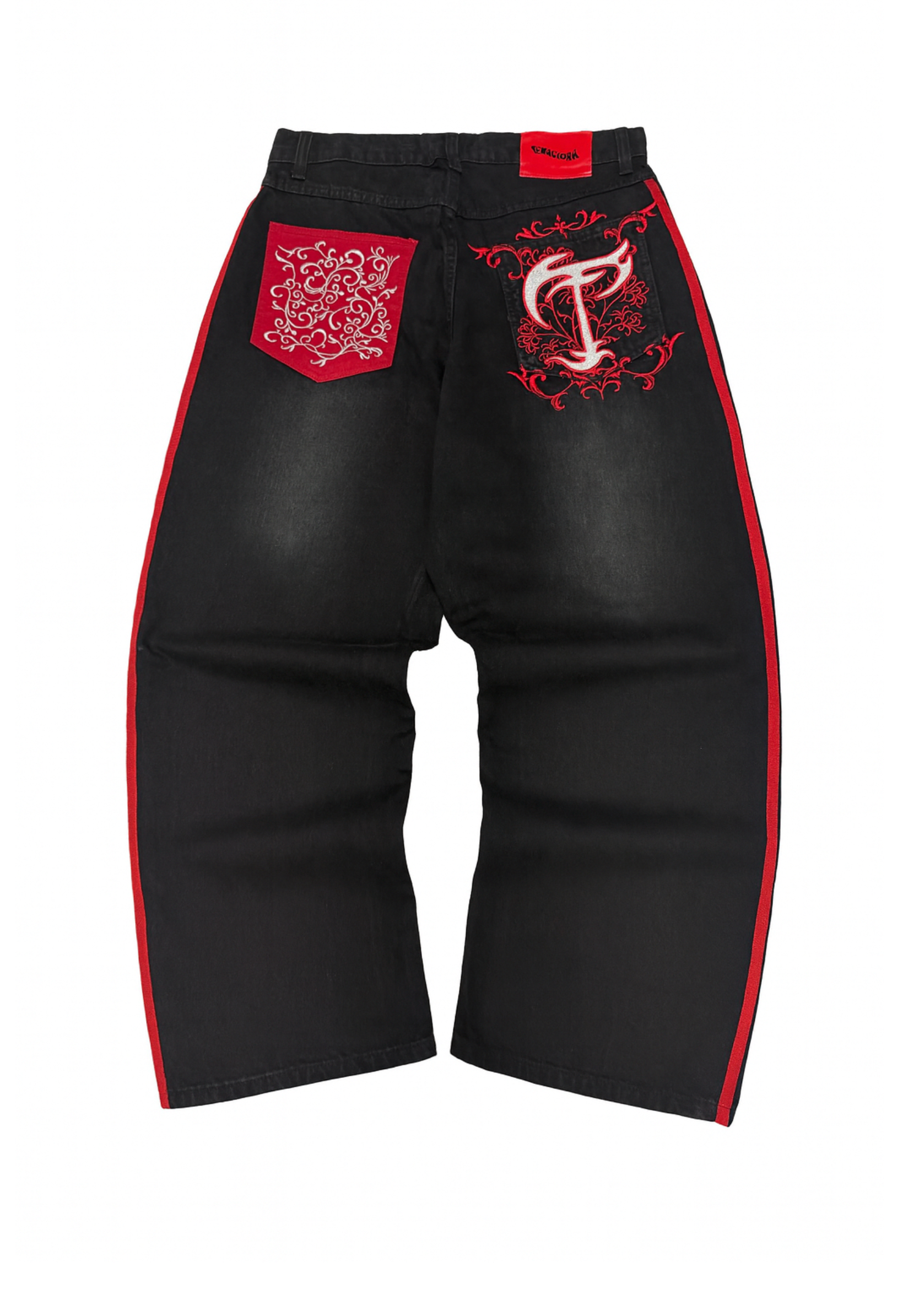 Baggy Jean T Logo Ce baggy à la coupe large et confortable se distingue par ses finitions soignées : patch personnalisé, bouton custom, et motifs brodés de haute qualité. Confectionné dans un denim 14 oz.